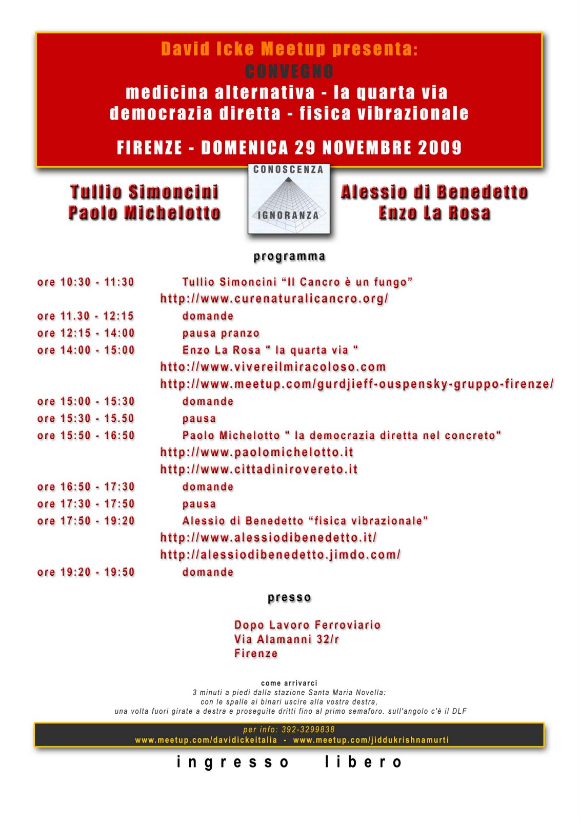 Abbiamo postato questa pubblicità perchè il congegno è organizzato dal david icke meetup, che è un gruppo di cui condivido molte cose e che, non a caso, hanno organizzato due convegni cui hanno invitato anche me.
